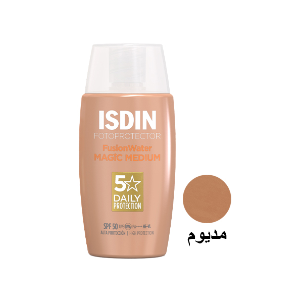 ضد آفتاب رنگی SPF50 رنگ مدیوم ایزدین مدل Fusion Water magic medium حجم 50 میل