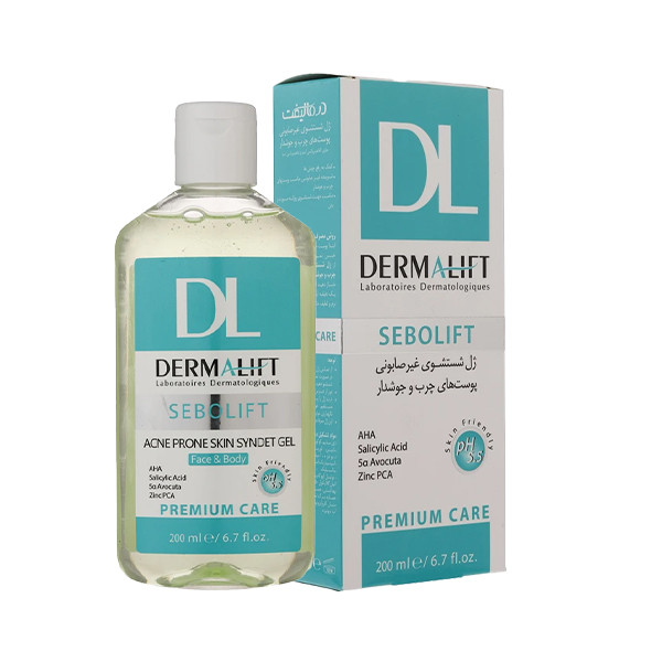ژل شستشو غیر صابونی صورت کنترل چربی و ضد جوش درمالیفت مدل Sebolift حجم 200 میل