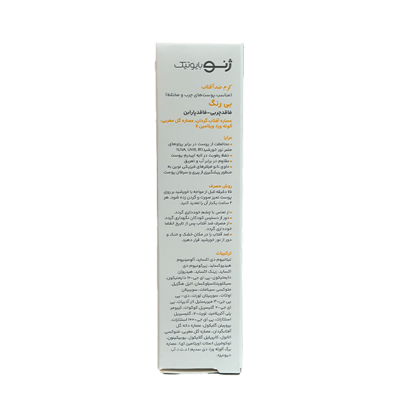 کرم ضد آفتاب بی رنگ SPF50 مناسب پوست چرب و مختلط ژنوبایوتیک حجم 50 میل، محصولی تخصصی برای حداکثر حفاظت و بهبود ظاهر پوستهای چرب و مستعد آکنه است. این کرم با فرمولاسیونی پیشرفته و با بهرهگیری از فیلترهای نوین UV (شیمیایی و فیزیکی), محافظتی کامل در برابر اشعههای UVA، UVB و مادون قرمز خورشید فراهم میکند. فرمولاسیون ویژه آن، ضمن کنترل ترشح چربی و جلوگیری از ایجاد جوش, با عصارههای گل مغربی، آلوئه ورا و آفتابگردان.