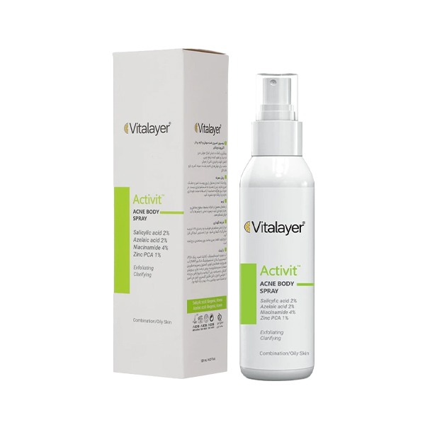 جوش و آکنه، تنها به صورت محدود نمیشوند و میتوانند زیبایی و سلامت پوست بدن شما را نیز به چالش بکشند. اسپری ضد جوش و لایه بردار Activit ویتالیر، پاسخی دقیق و مؤثر برای درمان این مشکلات پوستی در نواحی مختلف است. این محصول با فرمولاسیون پیشرفته و بافت سبک خود، به سرعت روی جوشها عمل کرده و التهاب و قرمزی آنها را کاهش میدهد. استفاده از آن، به شما کمک میکند تا پوستی شفاف، یکدست و عاری از هرگونه جوش یا جای جوش داشته باشید.