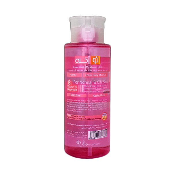 ✔ ویژگیهای برجسته محلول میسلار واتر پاک کننده آرایش نو آکنه مناسب پوست نرمال تا چرب حاوی عصاره گریپ فروت حجم 270 میل