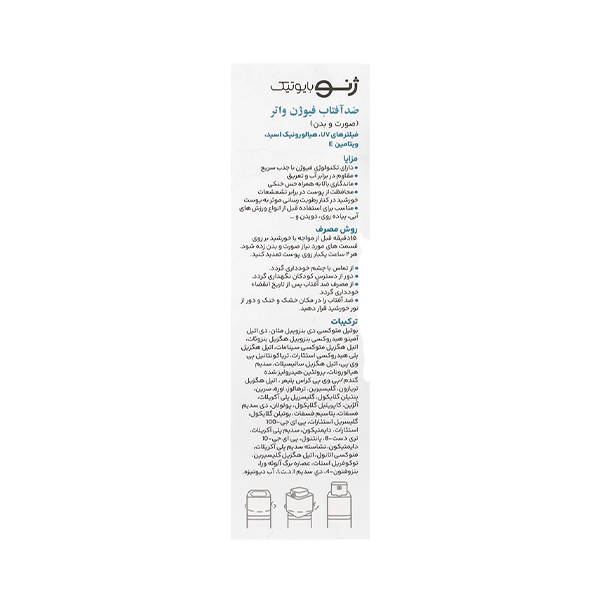 ✔ ویژگیهای برجسته کرم ضد آفتاب فیوژن واتر ژنو بایوتیک: