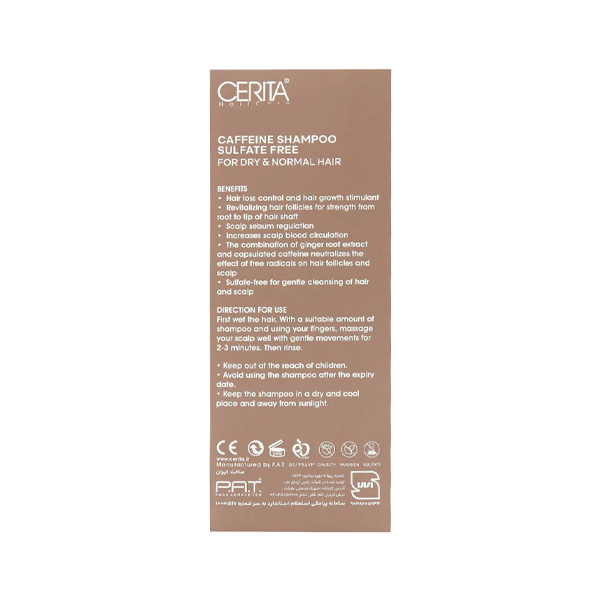 شامپو ضد ریزش بدون سولفات سریتا مناسب موهای خشک و معمولی مدل Caffeine حجم 200 میل