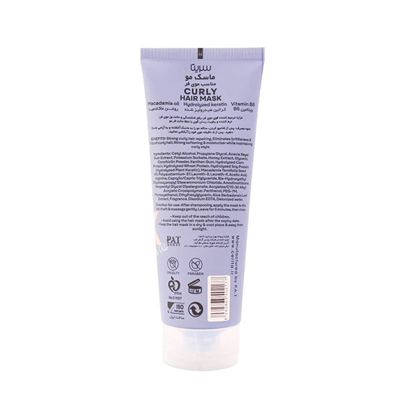 مشخصات کلیدی | ماسک Curly سریتا - ترمیم کننده قوی مو - آبرسان و ضد وز - حالت دهنده موی فر - حاوی کلاژن و روغن آرگان - تغذیه کننده عمقی - فاقد پارابن و سولفات |