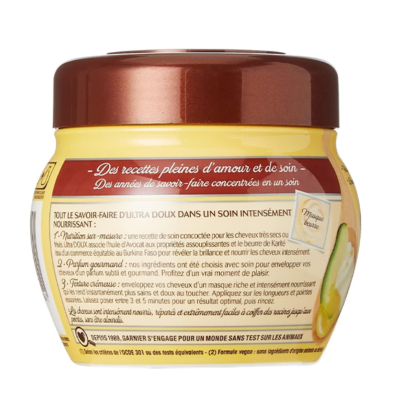 ویژگیهای برجسته ماسک مو مغذی و ترمیمکننده با روغن آووکادو و شی باتر گارنیه مدل Ultra Doux حجم 300 میل