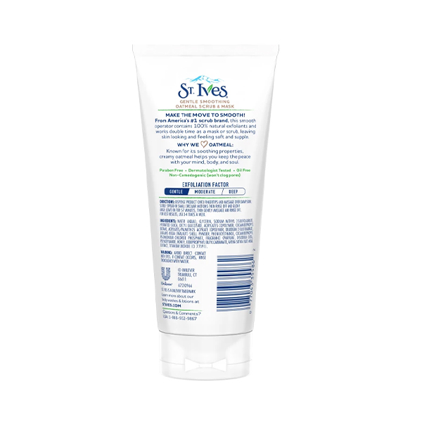 ویژگیهای برجسته ماسک اسکراب نرمکننده و تسکیندهنده سینت ایوز حاوی جو دوسر مدل Gentle Smoothing حجم 150 میل