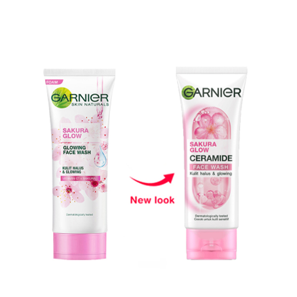 ژل شستشوی صورت روشنکننده و آبرسان گارنیه حاوی عصاره ساکورا و سرامید مدل Sakura Glow حجم 100 میل