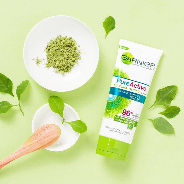 ویژگیهای برجسته فوم شستشوی صورت پاککننده عمیق گارنیه حاوی عصاره ماچا و سالیسیلیک اسید مدل Pure Active Matcha Deep Clean حجم 100 میل