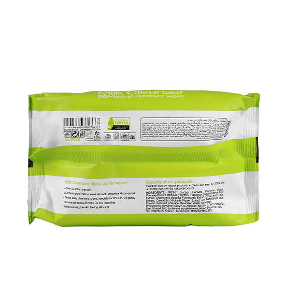 ویژگیهای برجسته دستمال مرطوب پاککننده آرایش مغذی و نرمکننده کامان مخصوص پوستهای خشک و حساس مدل Milk Cleanser بسته ۲۰ عددی