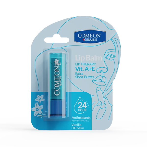 ویژگیهای برجسته بالم لب مرطوب کننده با تاثیر ۲۴ ساعته کامان حاوی ویتامین E+A با طعم وانیل وزن ۴.۸ گرم