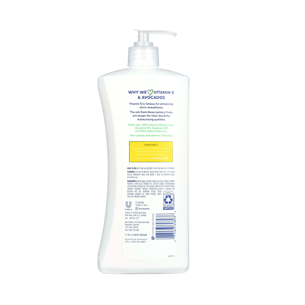 ویژگیهای برجسته لوسیون بدن آبرسان و درخشانکننده سینت ایوز حاوی ویتامین E و آووکادو مدل Hydrating حجم 621 میل