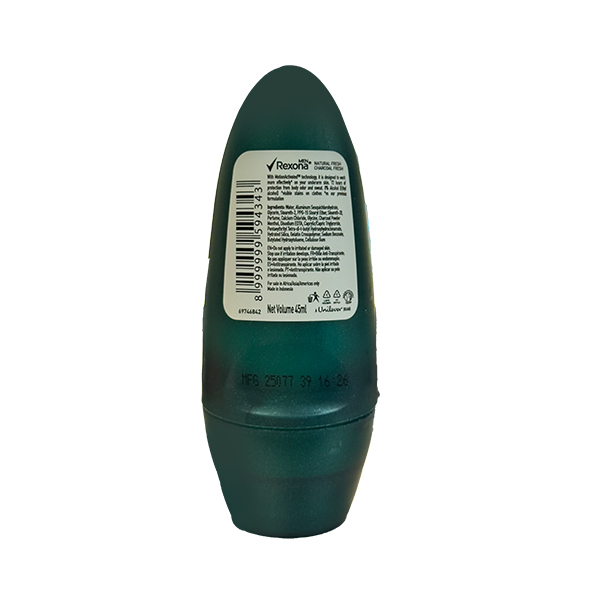 ویژگیهای برجسته رول ضد تعریق مردانه ۷۲ ساعته ضد لک و سمزدا رکسونا حاوی زغال فعال مدل Charcoal Fresh حجم 45 میل