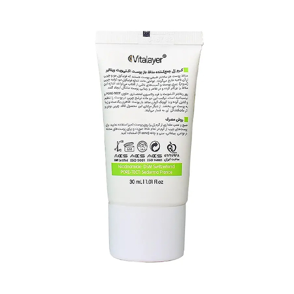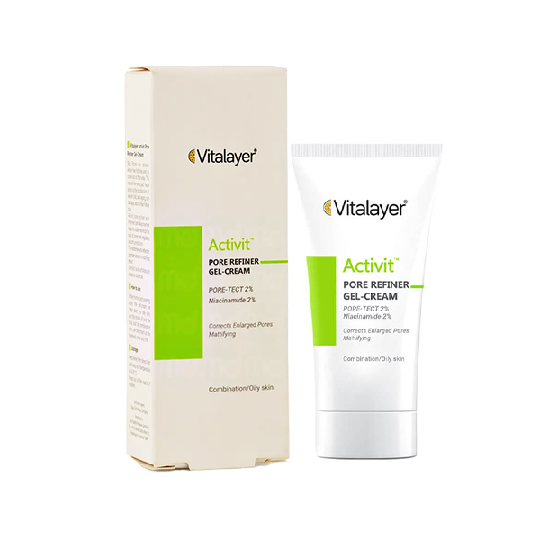 ویژگیهای برجسته ژل کرم جمع کننده منافذ باز و کنترلکننده چربی ویتالیر مخصوص پوستهای چرب و مختلط مدل Activit حجم 30 میل