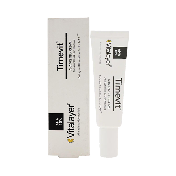ژل کرم لایهبردار و ضد چروک ویتالیر حاوی AHA 10% مدل Timevit حجم 30 میل