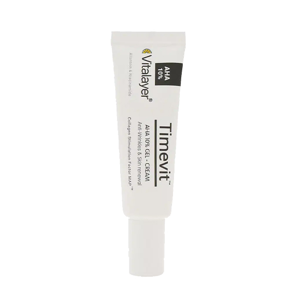 ویژگیهای برجسته ژل کرم لایهبردار و ضد چروک ویتالیر حاوی AHA 10% مدل Timevit حجم 30 میل