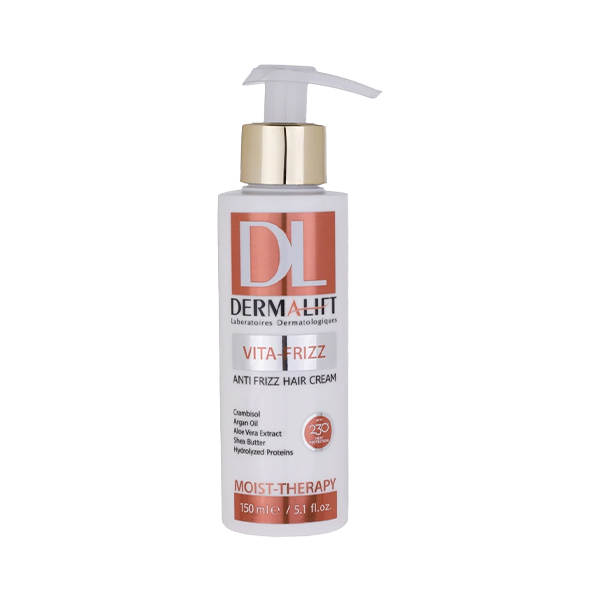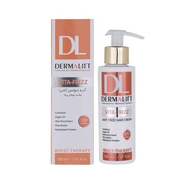 ویژگیهای برجسته کرم موی صافکننده و ضد وز درمالیفت مخصوص موهای وزدار و مجعد مدل Vita-Frizz حجم 150 میل