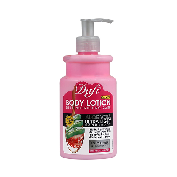 لوسیون آبرسان و تسکین دهنده بدن دافی حاوی عصاره آلوورا و ویتامین E حجم ۴۷۰ میل