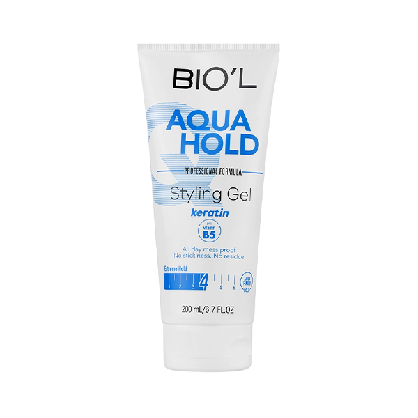 ژل حالت دهنده قوی مو بیول (Biol) مدل Aqua Hold, محصولی با قدرت نگهدارندگی بالا (سطح ۴) و ماندگاری ۱۲ ساعته است که برای انواع مو (قابل استفاده برای آقایان و بانوان) طراحی شده است. این ژل موها رو تا ساعتها بدون تغییر حالت اولیه نگه میداره و بر خلاف ژلهای نامرغوب، هیچگونه رد، سفیدی یا چسبندگی بر روی موها باقی نمیذاره. این محصول دارای فیلتر جاذب اشعه ماورای بنفش نور خورشید (UV Filter) است که از ساختار مو در برابر اثرات مخرب رادیکالهای آزاد و نور آفتاب محافظت میکنه. فرمولاسیون این ژل حاوی کراتین هیدرولیز شده و پروویتامین B5 (پانتنول) است که علاوه بر تقویت موها، به تأمین رطوبت مورد نیاز، احیای موهای آسیبدیده، افزایش درخشندگی و بهبود خاصیت ارتجاعی موها کمک شایانی مینماید.
