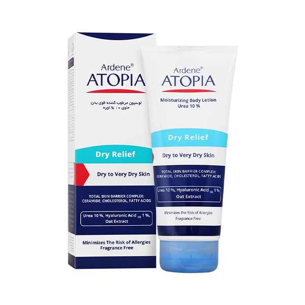 لوسیون مرطوب کننده قوی بدن آردن آتوپیا مدل Dry Relief, محصولی تخصصی و التیامبخش است که با ۱۰٪ اوره (Urea) و اسید هیالورونیک فرموله شده و برای پوستهای خشک، خیلی خشک و آسیبدیده مناسب است. این لوسیون دارای بافت سبک و زودجذب بوده و بدون ایجاد چربی یا چسبندگی، رطوبت مورد نیاز پوست رو به طور عمقی تأمین میکنه. وجود اوره در غلظت بالا، به کاهش زبری، خشکی و حالت فلسی پوست کمک کرده و ضخامت سطح خارجی پوست رو در نواحی مانند آرنج، زانو و قوزک پا کاهش میده. فرمولاسیون این محصول حاوی سرامید، کلسترول و اسیدهای چرب برای بهبود ساختار سد دفاعی هیدرولیپیدی پوست بوده و فاقد الکل، پارابن، اسانس و رنگ است و به تسکین خارش و التهابات ناشی از خشکی و اگزما کمک مینماید.