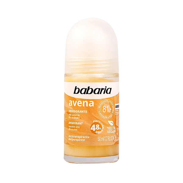 رول ضد تعریق زنانه ۴۸ ساعته باباریا مدل Avena فاقد الکل حاوی عصاره جو دوسر حجم ۵۰ میل