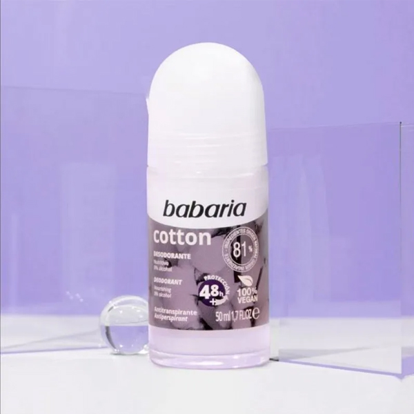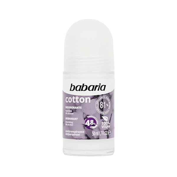 رول ضد تعریق زنانه ۴۸ ساعته باباریا مدل Cotton فاقد الکل حاوی عصاره پنبه حجم ۵۰ میل