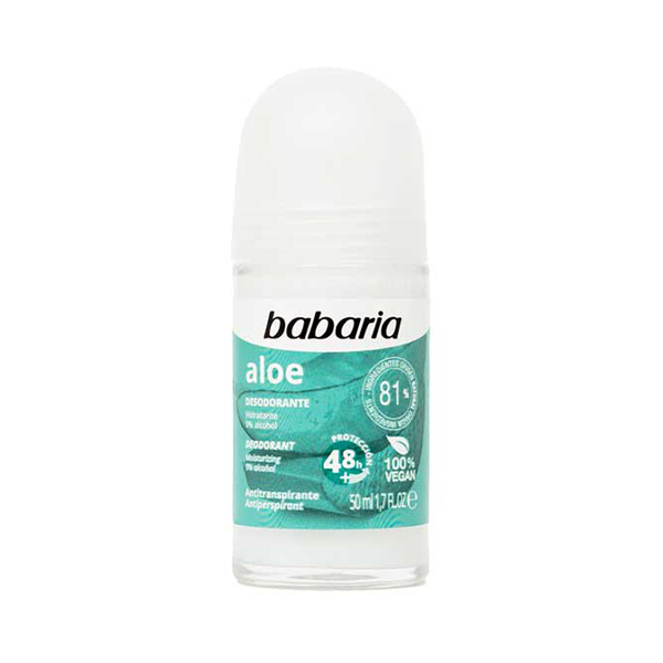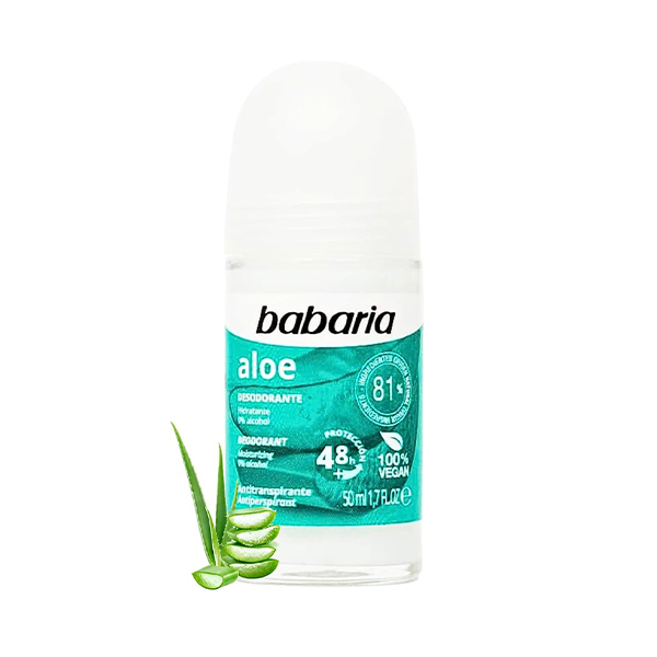 رول ضد تعریق زنانه ۴۸ ساعته باباریا مدل Aloe فاقد الکل حاوی عصاره آلوئه ورا حجم ۵۰ میل