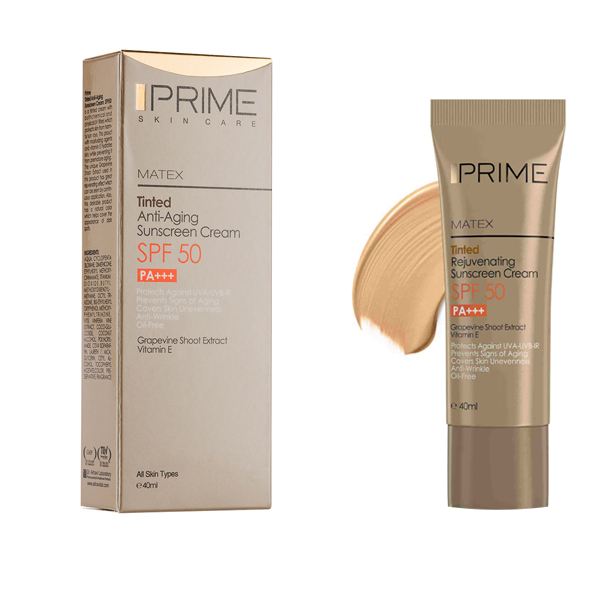 کرم ضد آفتاب رنگی فاقد چربی پرایم SPF 50 جوان کننده و ضد چروک مناسب انواع پوست حجم ۴۰ میل
