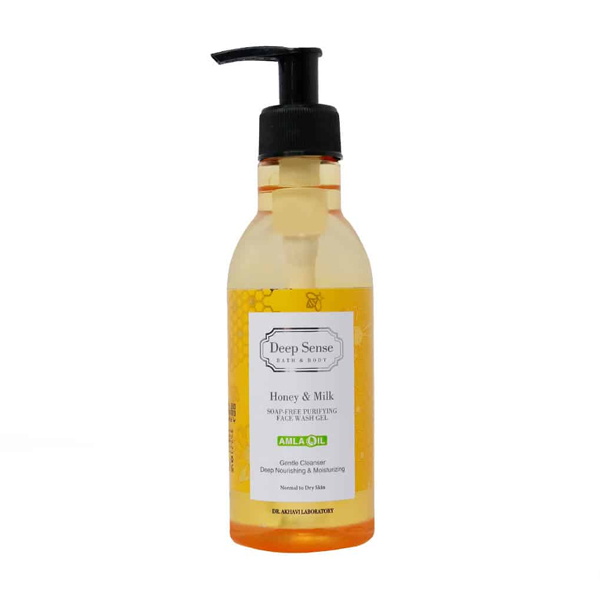 ژل شستشو صورت آبرسان و فاقد سولفات دیپ سنس حاوی شیر و عسل مناسب پوست نرمال تا خشک حجم ۲۵۰ میل
