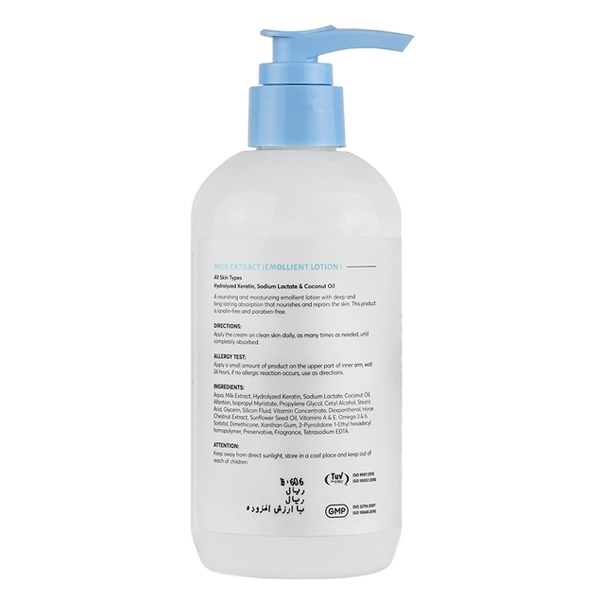 | مشخصات کلیدی | لوسیون نرم کننده بدن - حاوی کراتین - مناسب انواع پوست - تغذیه کننده و آبرسان - عصاره شیر |