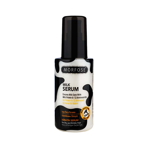 سرم موی مورفوس (Morfose) مدل Milk Therapy (شیر درمانی), یک سرم تقویتی و مغذی است که به طور اختصاصی برای موهای خشک، شکننده و آسیب دیده طراحی شده است. این سرم بدون نیاز به آبکشی (Leave-in) بوده و به دلیل بافت سبک و جذب سریع, موها رو چرب یا سنگین نمیکنه. فرمولاسیون این محصول حاوی ترکیبات مغذی و ترمیمکننده ساختاری شامل پروتئین شیر، کراتین و ۱۲ نوع آمینو اسید است. کراتین و پروتئین شیر به طور مؤثری به ترمیم ساختار مو و بازسازی نقاط آسیب دیده کمک کرده و استحکام آن رو افزایش میدن. این سرم دارای خاصیت ضد وز و ضد حرارت است و با ایجاد یک لایه محافظتی، از موها در برابر آسیبهای حرارتی سشوار و اتو محافظت میکنه. حجم ۱۰۰ میلیلیتری این سرم آن رو برای استفاده روزانه و مداوم مناسب میسازه.