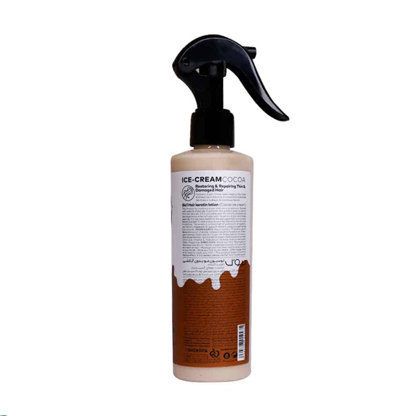 لوسیون موی بیول (Biol) مدل Cocoa (بستنی شکلاتی), یک لوسیون تقویتی بدون نیاز به آبکشی (Leave-in) با حجم ۲۵۰ میلیلیتر است که به طور تخصصی برای موهای آسیب دیده، خشک و شکننده طراحی شده است. این محصول با بافت شیری و سبک, به سرعت جذب موها میشه. فرمولاسیون این لوسیون حاوی روغن آرگان، عصاره کاکائو، کراتین هیدرولیز شده و پروتئین ابریشم است. روغن آرگان و کراتین به طور فعال به ترمیم و بازسازی ساقه موها کمک کرده و استحکام آن رو افزایش میدن. این لوسیون با تغذیه عمقی موها، از شکنندگی، وز و ایجاد موخوره جلوگیری مینماید و به دلیل داشتن ترکیبات محافظتی, در برابر آسیبهای محیطی و حرارتی (سشوار) از موها محافظت میکنه.