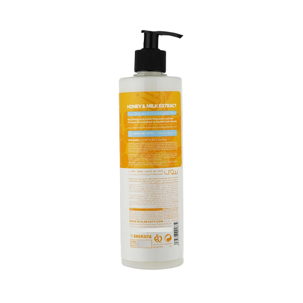 ماسک موی داخل حمام بیول مدل Honey & Milk حاوی پروتئین شیر و عسل مناسب موهای خشک و آسیب دیده حجم ۵۰۰ میل