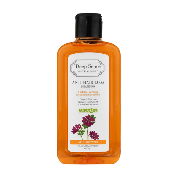 شامپو تقویت کننده و ضد ریزش دیپ سنس حاوی روغن آملا و عصاره جینسینگ مناسب انواع مو حجم ۲۰۰ میل