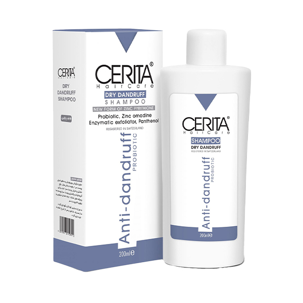 شامپو ضد شوره سریتا حاوی پانتنول و پروبیوتیک مناسب موهای خشک حجم ۲۰۰ میل