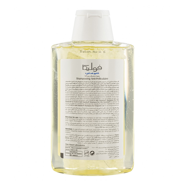 شامپو ضد شوره فولیکا مخصوص مصرف روزانه حاوی ترکیبات ضد قارچ حجم ۲۰۰ میل