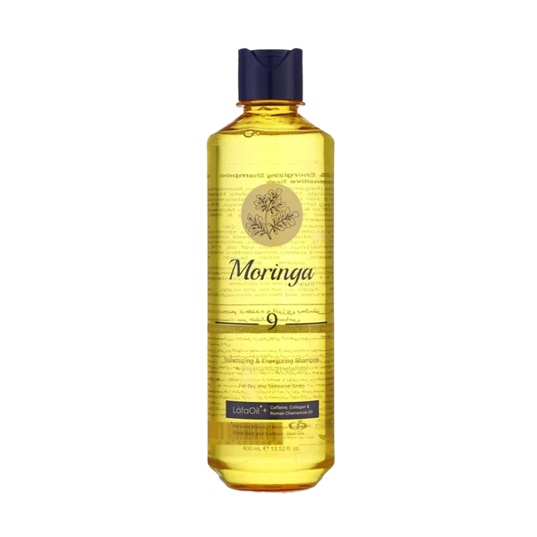 شامپو حجم دهنده و انرژی بخش مورینگا حاوی روغن مورینگا و کافئین مناسب پوست سر خشک و حساس حجم ۴۰۰ میل