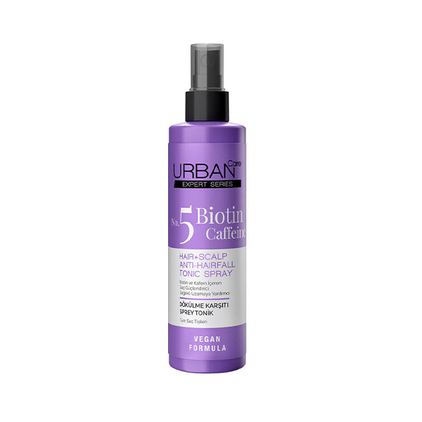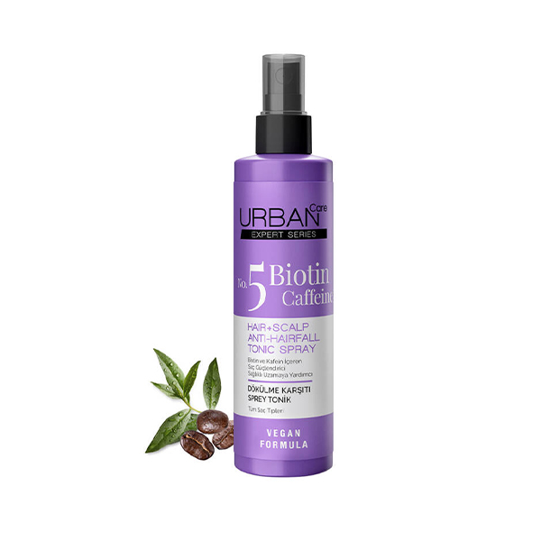 تونیک ضد ریزش و تقویت کننده No.5 Biotin Caffeine از برند تخصصی اوربن کر (Urban Care)، یک محصول درمانی و تقویتی بدون نیاز به آبکشی است که برای مبارزه با ریزش مو، افزایش رشد و تقویت ساختار موهای ضعیف و کمپشت طراحی شده. این تونیک با بافت سبک و جذب سریع خود، به عمق ساقه مو و پوست سر نفوذ میکند. ویژگی برجسته این مدل، وجود ترکیبات فعال محرک رشد مانند بیوتین (Biotin) و کافئین است. کافئین با افزایش گردش خون موضعی، فولیکول مو را بیدار و برای رشد تحریک میکند و بیوتین نیز مواد سازنده اصلی کراتین را برای تقویت و افزایش ضخامت تار مو تأمین میکند. این تونیک به ترمیم ساقه مو کمک کرده و از خشکی و موخوره جلوگیری مینماید.