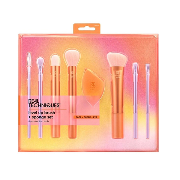 ست تخصصی Level Up از برند ریل تکنیک (Real Techniques)، یک مجموعه استراتژیک از ۸ ابزار (۷ براش تخصصی و ۱ اسفنج) است که برای ارتقای کیفیت آرایش در سطوح حرفهای طراحی شده است. این مجموعه شامل براشهای کلیدی مانند RT 343 برای ابرو، RT 326 برای خط چشم دقیق و براشهای متنوع سایه و کانتورینگ است. الیاف به کار رفته در این محصول از نوع UltraPlush مصنوعی و بسیار متراکم هستند که بدون ایجاد حساسیت، مواد آرایشی پودری و کرمی را به صورت لایهای و یکنواخت روی پوست پخش میکنند. اسفنج Miracle Complexion موجود در این ست نیز با طراحی لبهدار، امکان دسترسی به زوایای سخت صورت را فراهم کرده و فینیشی طبیعی و درخشان ایجاد میکند.