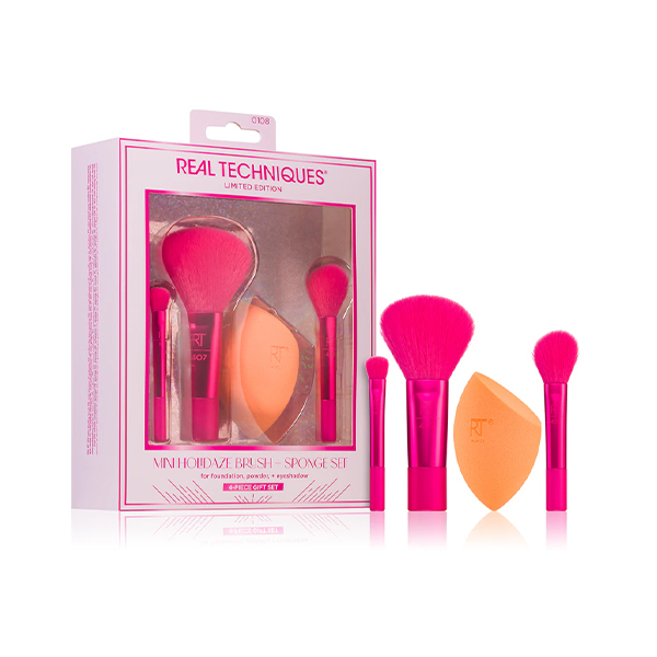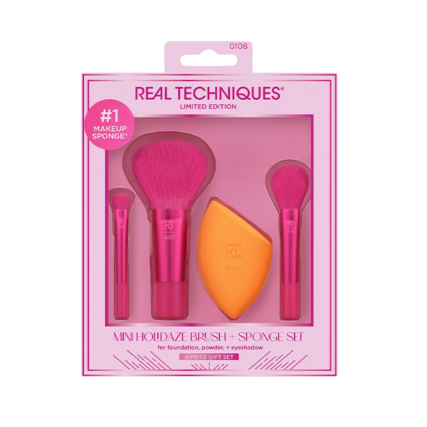 ست آرایشی ۴ عددی مدل Mini Holidaze از برند تخصصی ریل تکنیک (Real Techniques)، یک مجموعه مسافرتی و بسیار کاربردی است که شامل ۳ عدد براش با دستههای کوتاه (Mini) و ۱ عدد اسفنج آرایشی معروف میرکل میباشد. این ست به گونهای طراحی شده که با وجود ابعاد کوچک، هیچ تفاوتی در کیفیت الیاف و عملکرد با سایزهای اصلی ندارد. براشهای این مجموعه از الیاف مصنوعی UltraPlush ساخته شدهاند که بسیار نرم و متراکم بوده و برای پخش کردن انواع محصولات پودری، کرمی و مایع روی پوست ایدهآل هستند. اسفنج موجود در این ست نیز با طراحی ۳ وجهی خود، پوششدهی کاملی را برای کانسیلر و کرمپودر در نواحی مختلف صورت فراهم میکند.