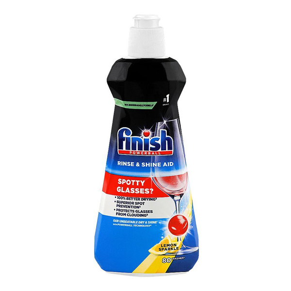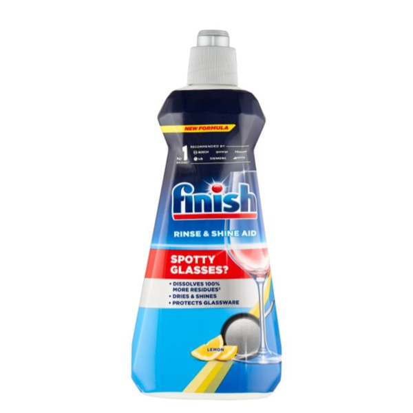 مایع جلادهنده و براق کننده لیمویی ماشین ظرفشویی فینیش مدل Parlatici با خاصیت خشککنندگی سریع حجم ۴۰۰ میل