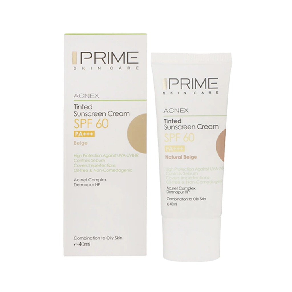 کرم ضد آفتاب رنگی پرایم مدل Acnex مناسب پوست چرب و مختلط کنترل کننده ترشح سبوم با SPF 60 حجم ۴۰ میل