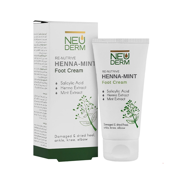 | مشخصات کلیدی | کرم ترمیمکننده پا - برند نئودرم (Neuderm) - حاوی عصاره حنا و نعنا - رفع پینه و زبری شدید - مناسب آرنج و زانو - حجم ۵۰ میل |