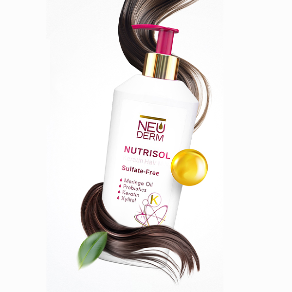 شیر مو نئودرم مدل Nutrisol با خاصیت ترمیمکننده ساختاری و بازسازیکننده کوتیکول با روغن مورینگا حجم 200 میل
